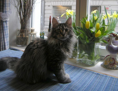 Här på köksbordet i stan är Amorra bara 14 veckor gammal |