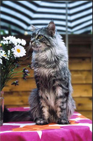 Mor: CH S* Acrobat´s Clarissa Far: S* El Moroccos Mordred The Whizard , svartsilvertabby Ägare: Fam. Askegård |
